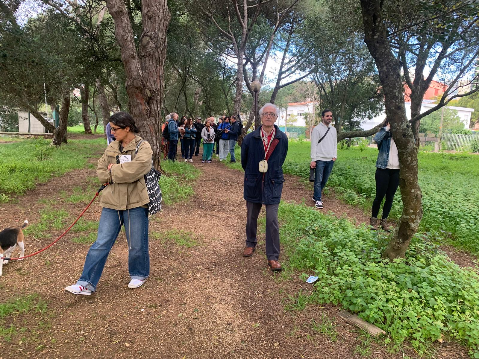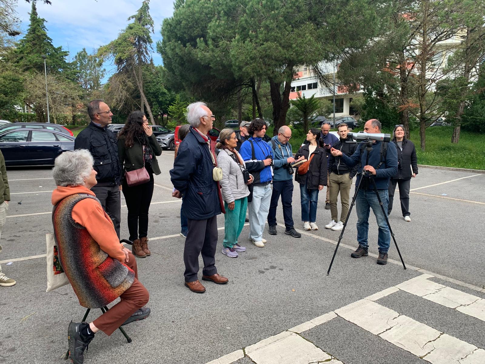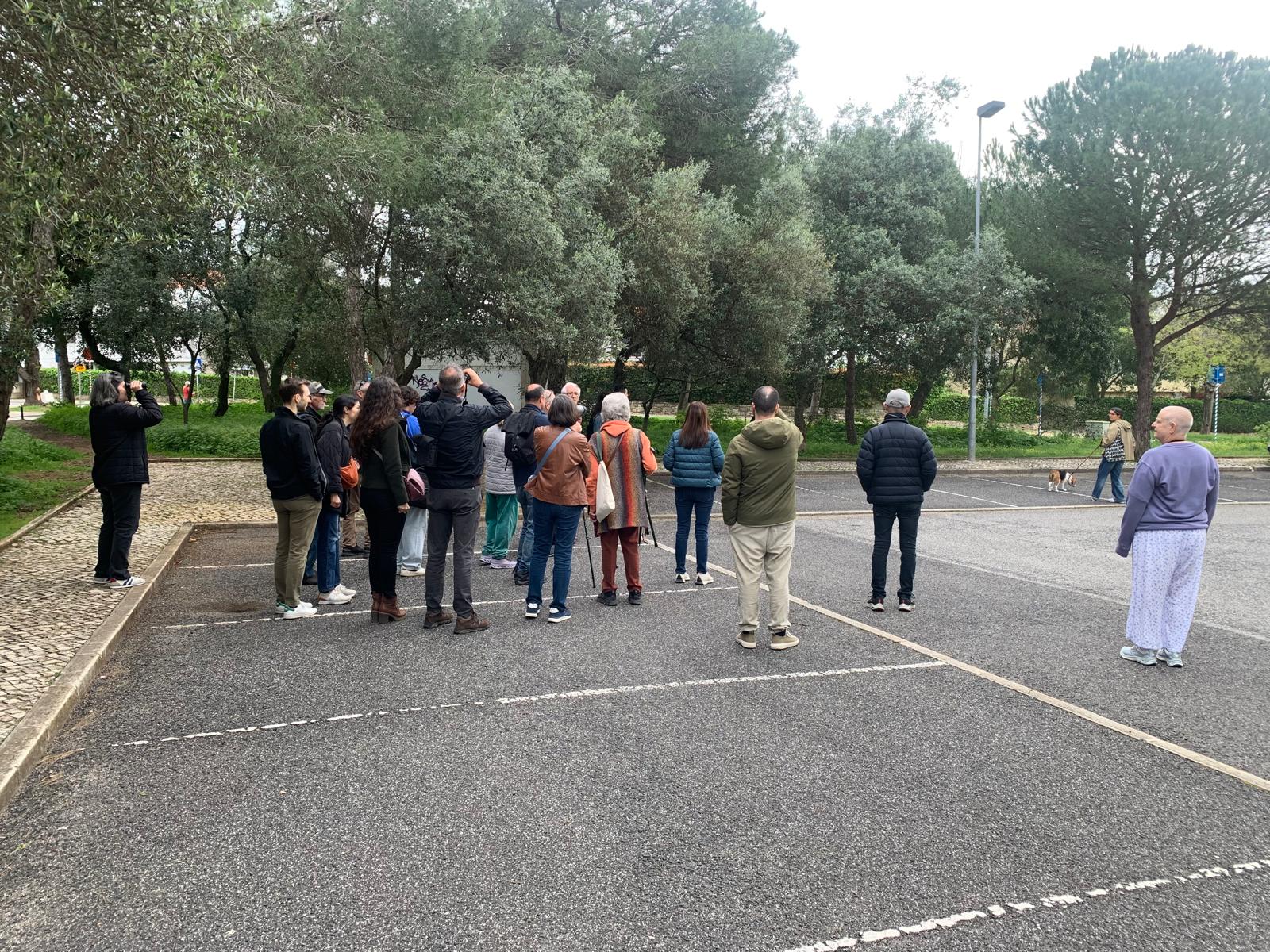 Ao longo de um percurso alargado pela zona central de Nova Oeiras, o passeio decorreu quase como um pequeno safari urbano: sempre que alguém identificava uma ave, partilhava com o grupo e o guia ajudava todos a localizá-la.
