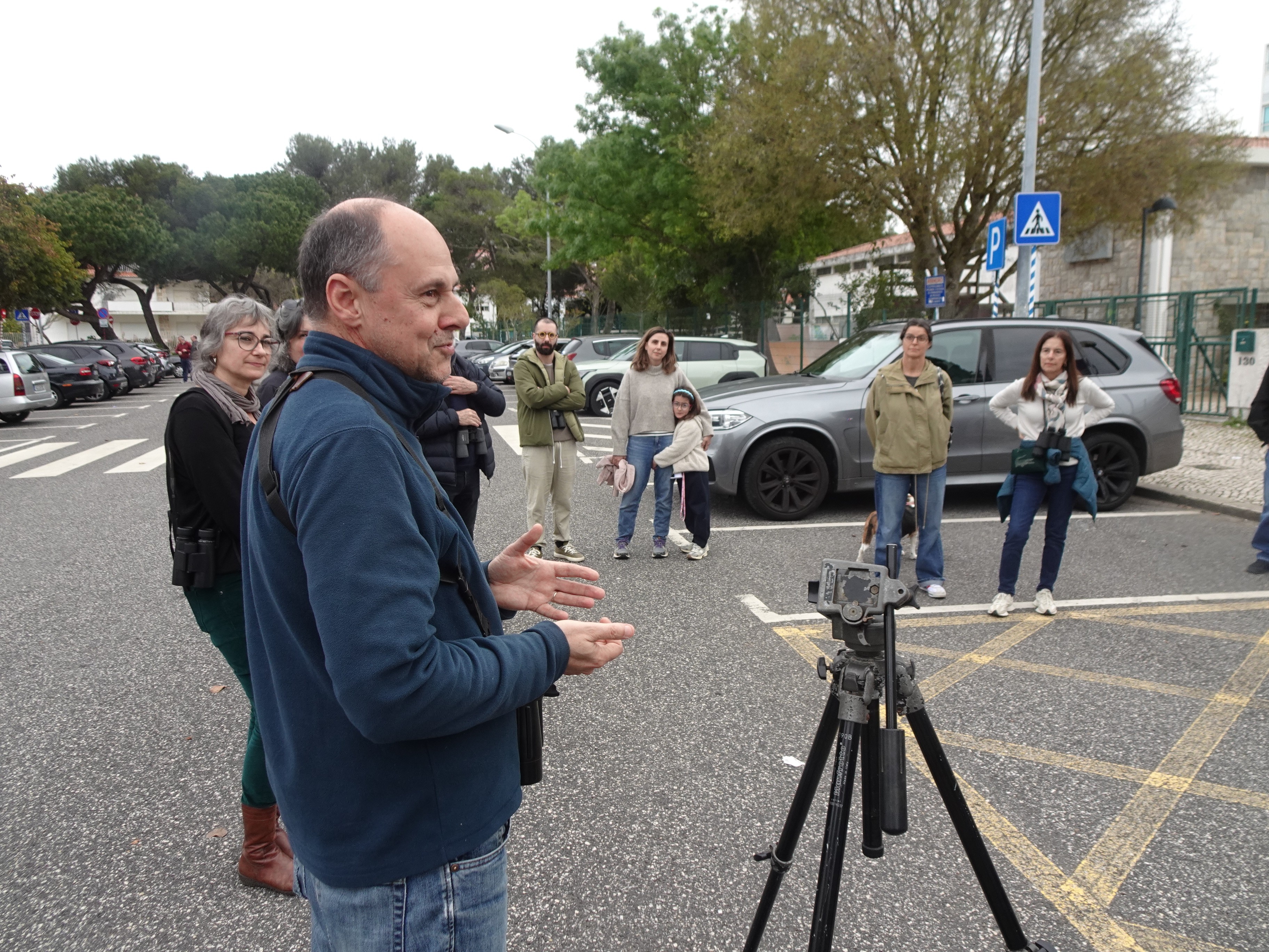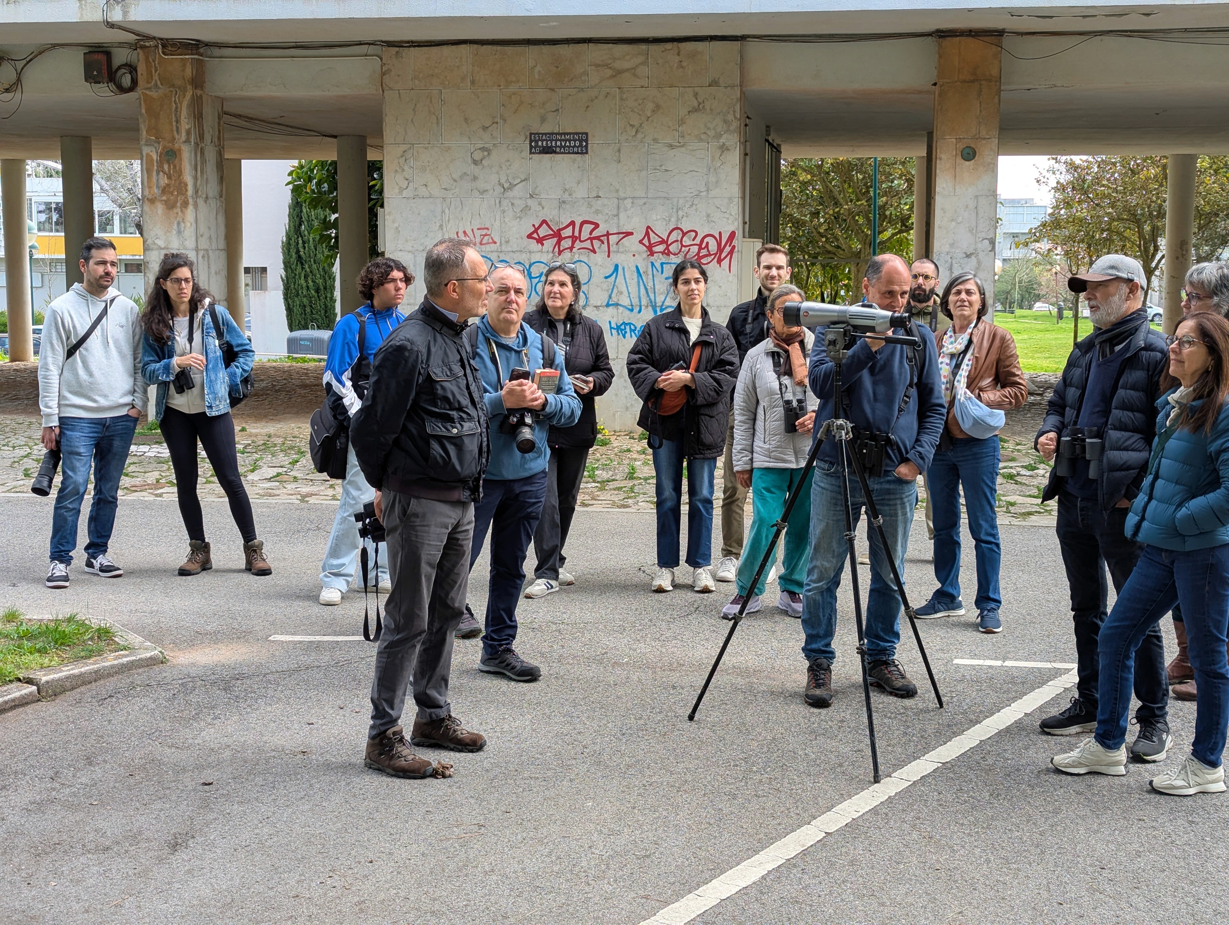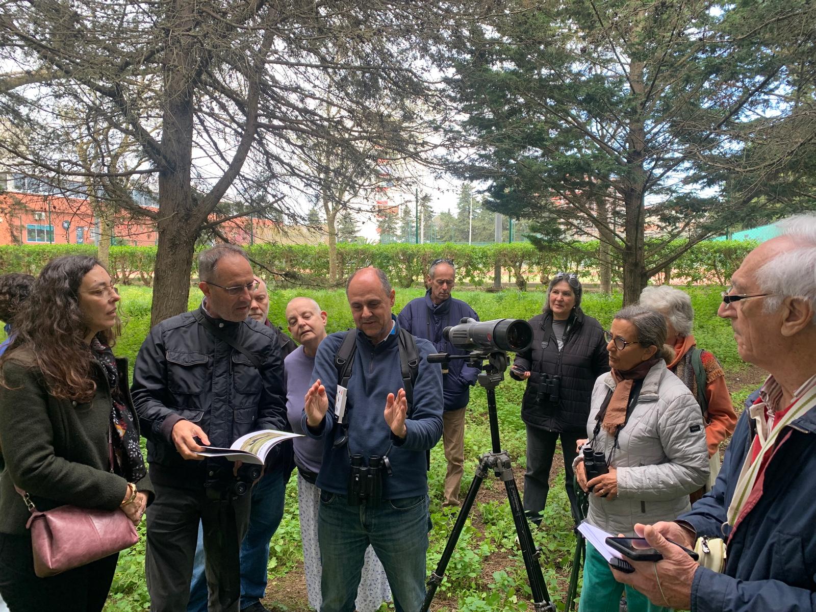 Ao longo de um percurso alargado pela zona central de Nova Oeiras, o passeio decorreu quase como um pequeno safari urbano: sempre que alguém identificava uma ave, partilhava com o grupo e o guia ajudava todos a localizá-la.